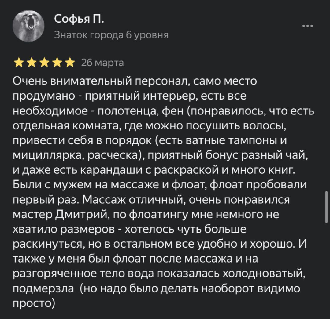 Массаж - это лучший друг флоатинга.