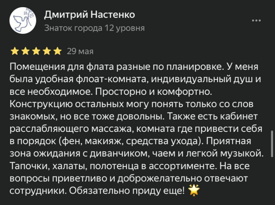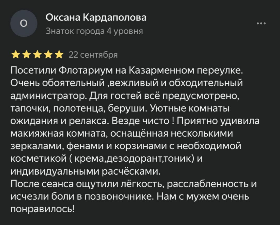Идеально подойдет: - Новичкам. Кто только пробует флоатинг. - В подарок. Для тех у кого есть все и их сложно удивить. - Парам. Идея для свидания. Побыть вдвоем в нашей фирменной невесомости.